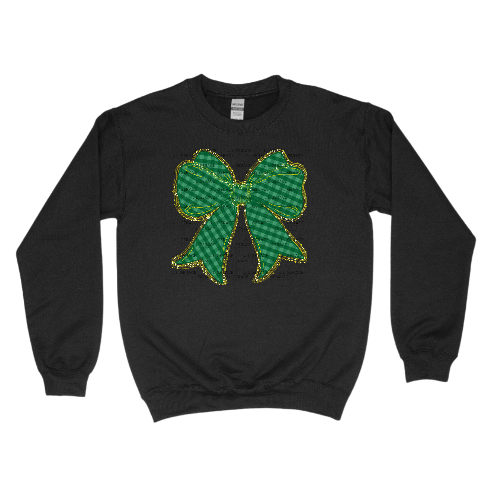 Green Gingham Bow PNG Gold String Glitter Outline St Patricks Day Sublimation Digital Download