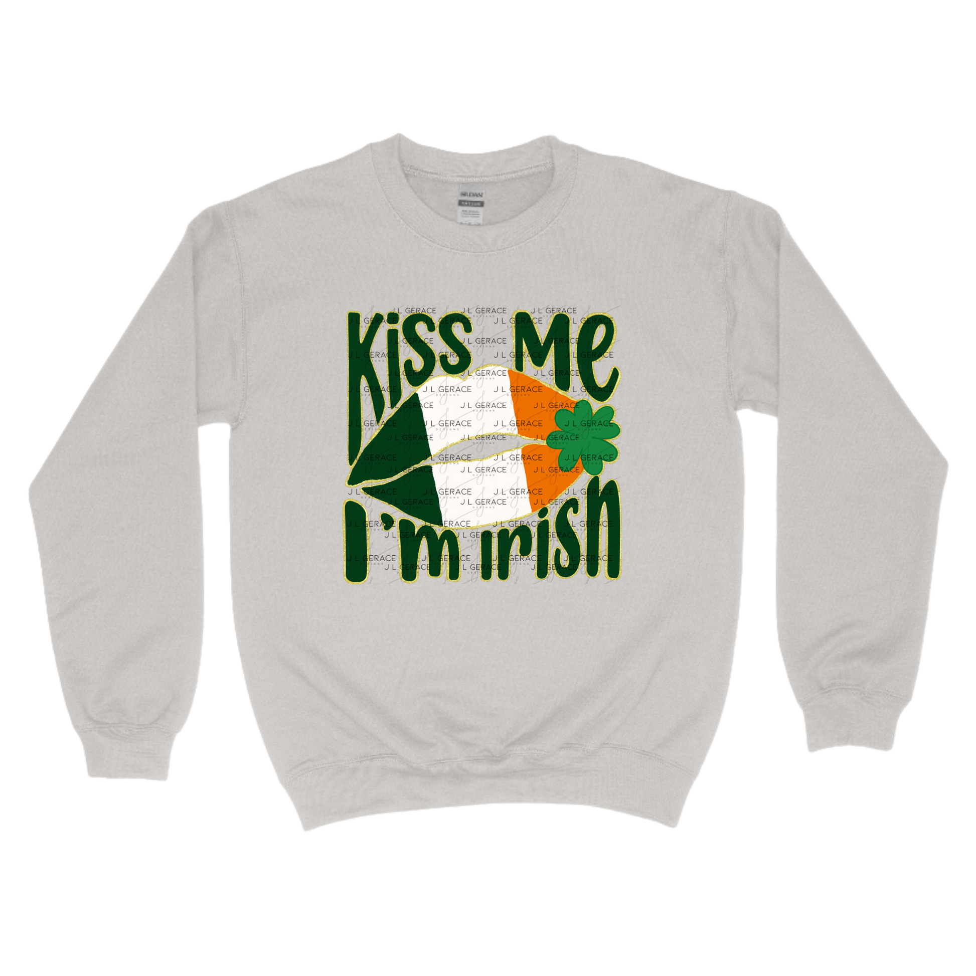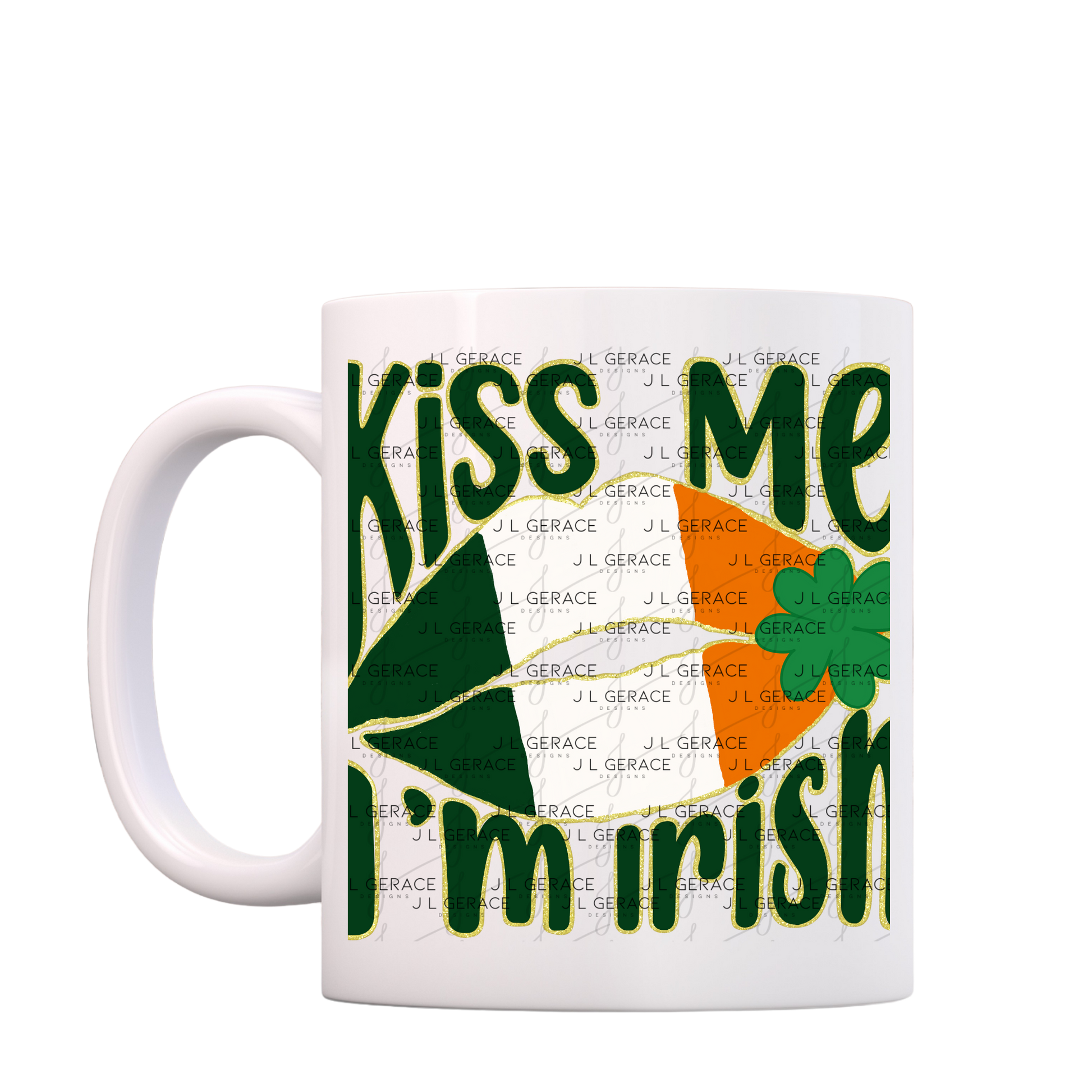 The center lip design showcases the green, white, and orange Irish flag with a subtle distressed detail and shamrock accent, while the gold glitter outline adds dimension and a premium holiday look. Perfect for St Patricks Day shirts, party outfits, bar crawl apparel, sweatshirts, tote bags, and small business seasonal collections.