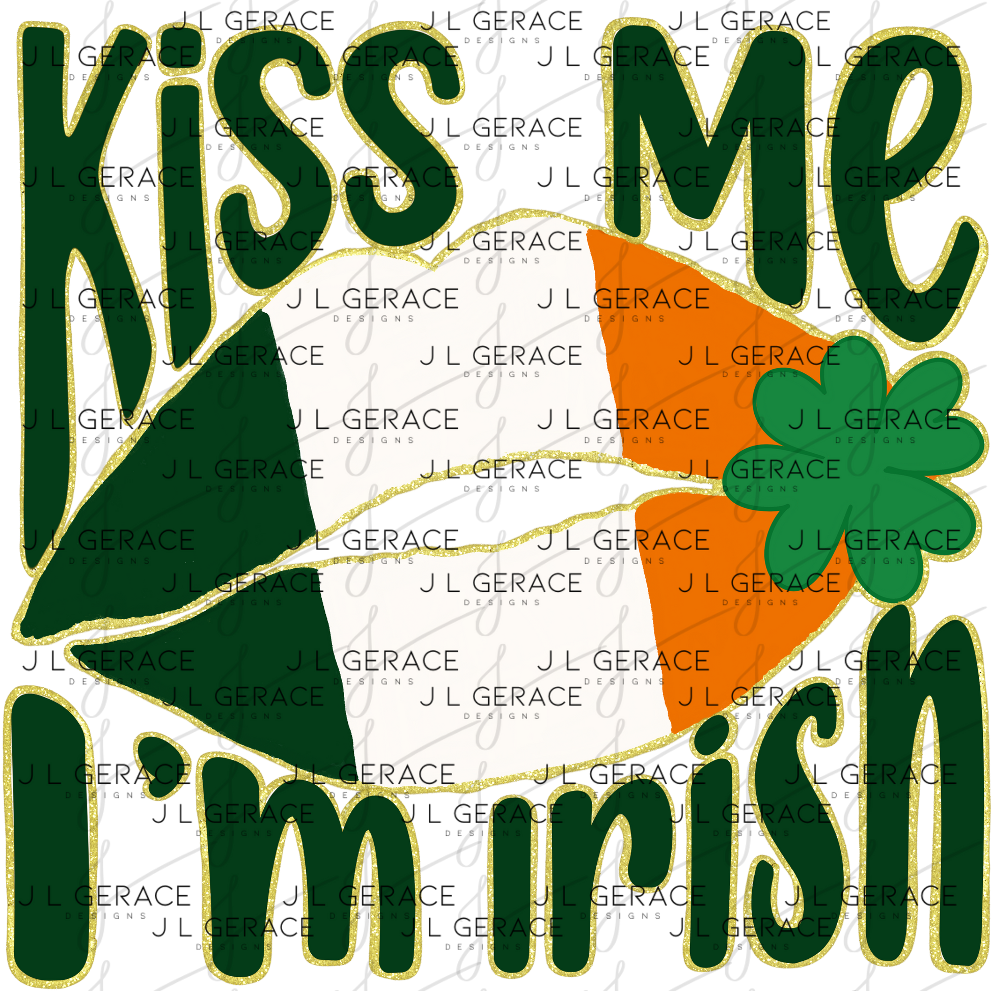 Kiss Me I’m Irish PNG Gold Glitter Outline Irish Flag Lips Digital Download
