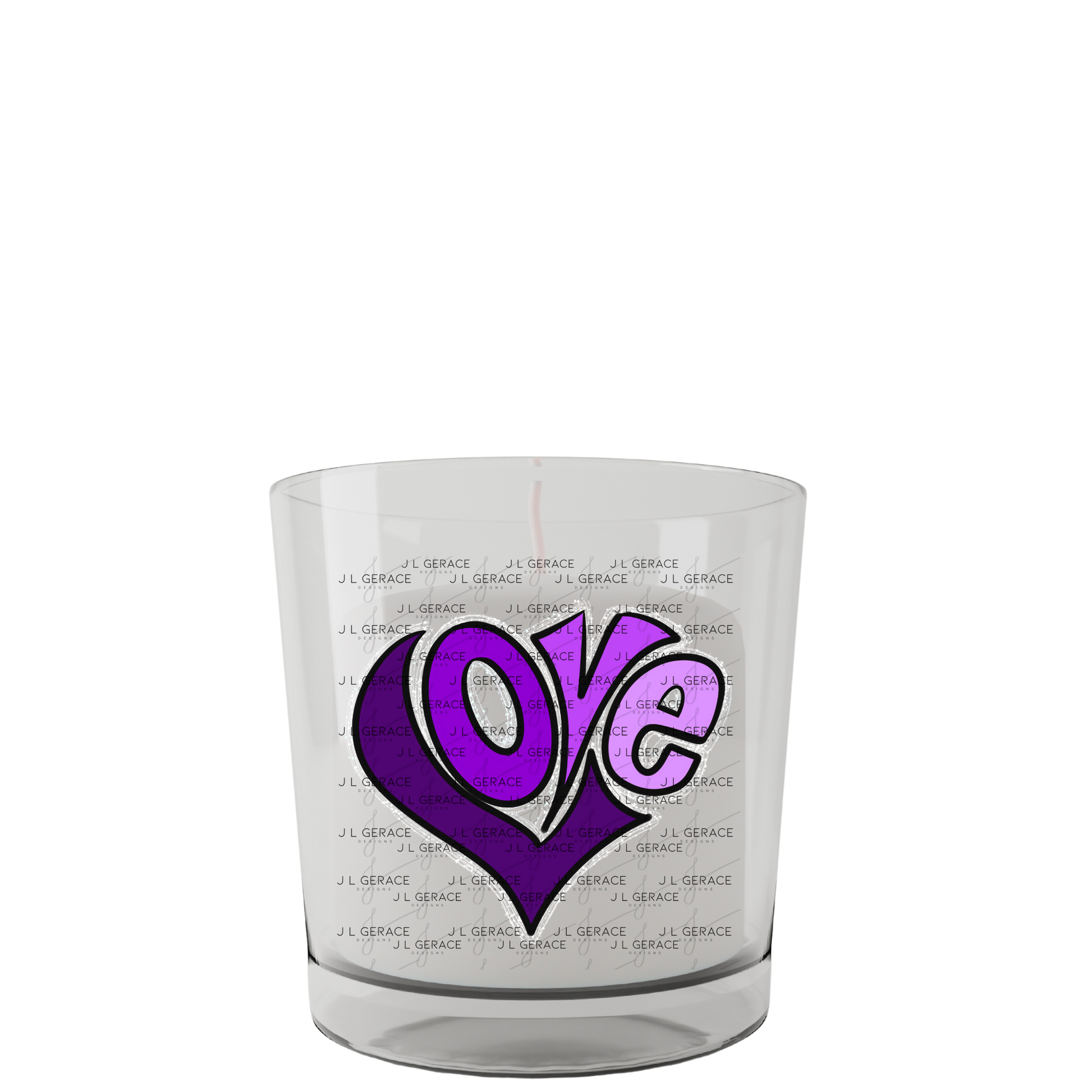 LOVE heart Letters Purple PNG with Glitter Outline Design