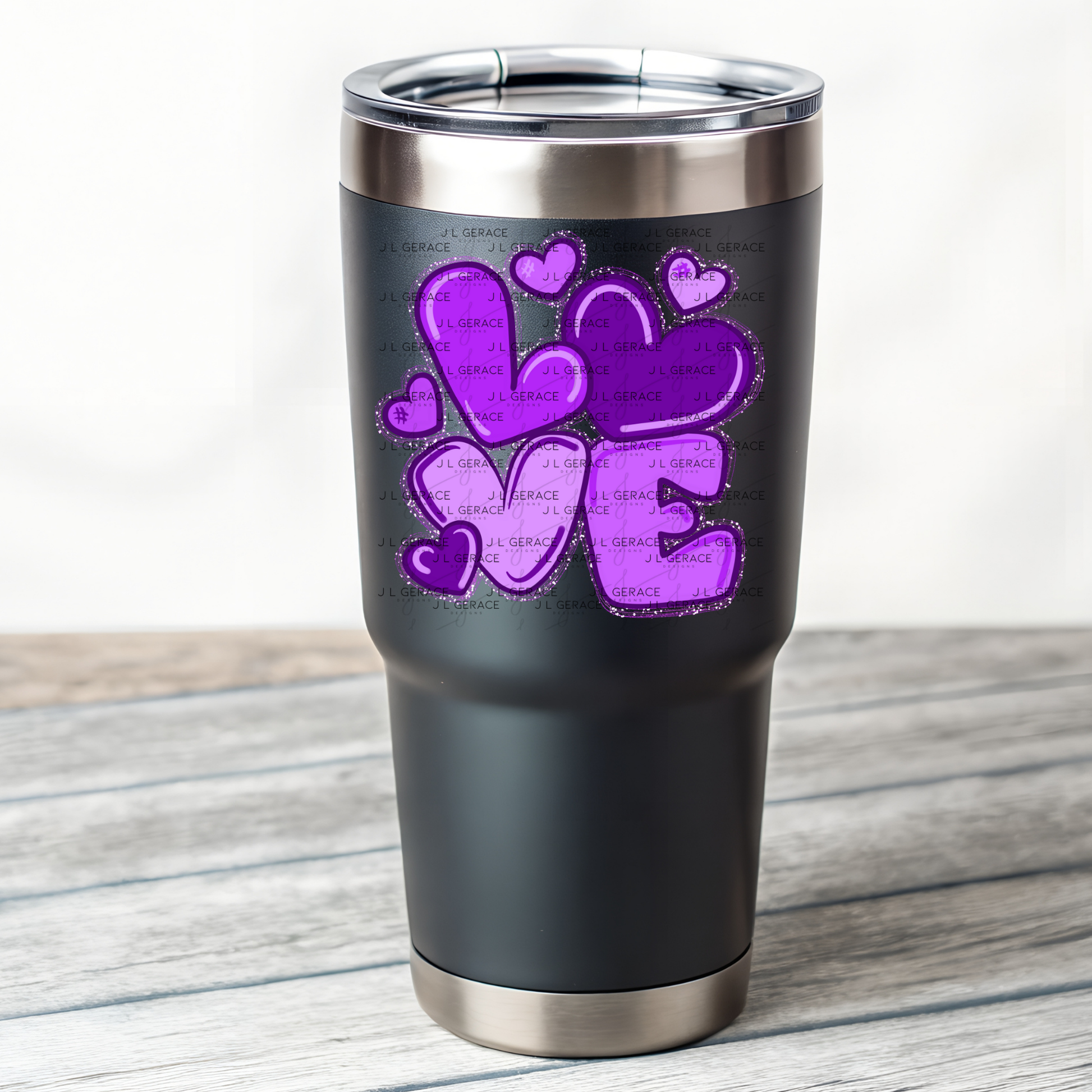 • Purple bubble-style LOVE lettering